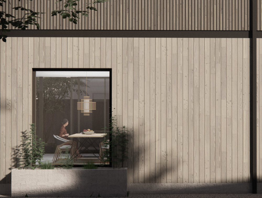 Large sliding doors open the new space directly onto the garden, blurring the boundary between inside and out. Timber cladding helps the extension sit naturally within its green context, while timber fins across large picture windows introduce natural light while offering privacy from the street-facing elevation.