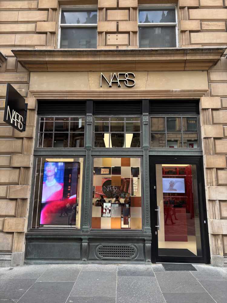The store showcases campaign imagery by François NARS, celebrating the brand’s bold artistry, while its design – created in collaboration with Brightworks Sustainability – ensures that makeup stations and product displays meet the highest sustainability standards. The store pays homage to Glasgow’s rich architectural heritage, seamlessly integrating listed features into the NARS design framework.