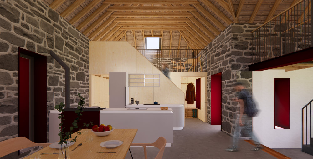 A remote agricultural building in the Cairngorms, sat in a beautiful rural setting with views out to the rolling hills. The building is essentially a store with 600mm thick stone walls and a slate roof that can be re-used.