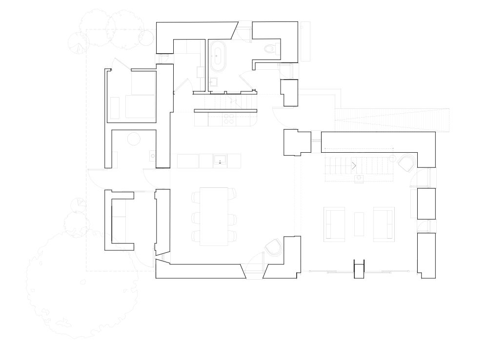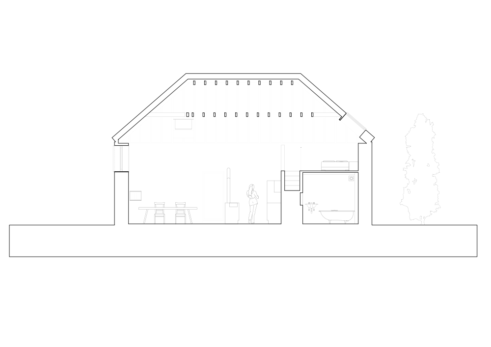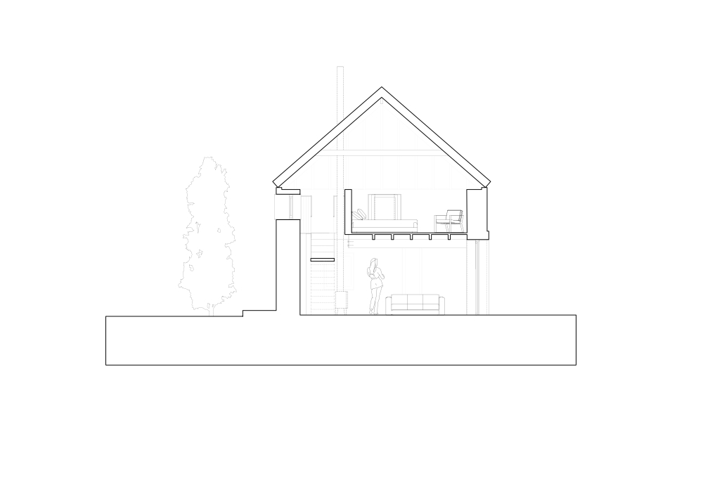 Our solution was to use the existing mezzanine as the master bedroom with a new slot stair that is a feature within the living space. The second bedroom is a second mezzanine, created with ply cladding and a plywood structure.