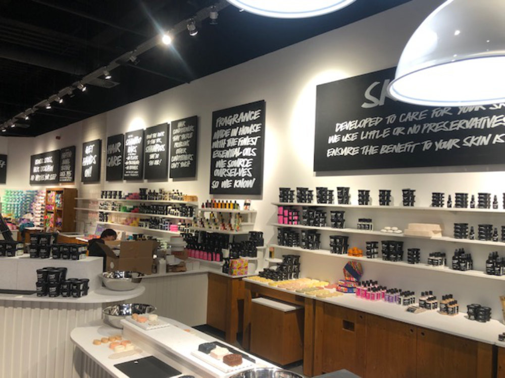 The interior design follows Lush’s signature design style with all the display cabinetry being ethically sourced and made from sustainable materials which prioritise upcycling and recycling activities.