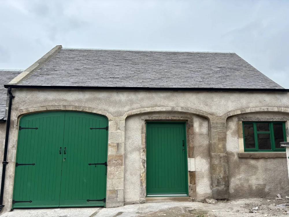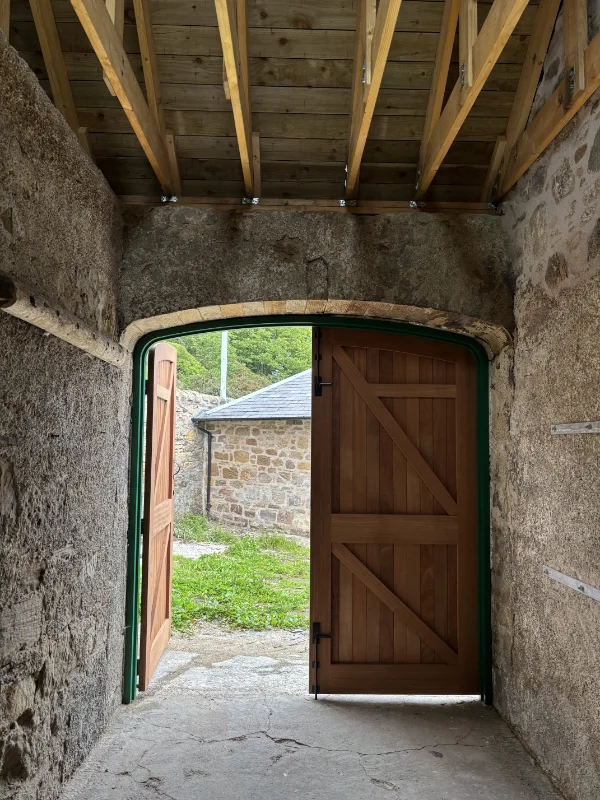 The first stage of the project involved removing the dilapidated roof structure and invasive trees growing within the walls, enabling an accurate survey to be carried out. This was followed by essential stonework repairs, a new roof structure, and the replacement of all doors and windows. Reclaimed slates, locally sourced stone, and quality timber were used to bring the buildings back into safe and appropriate use, in a way that respected their heritage character.