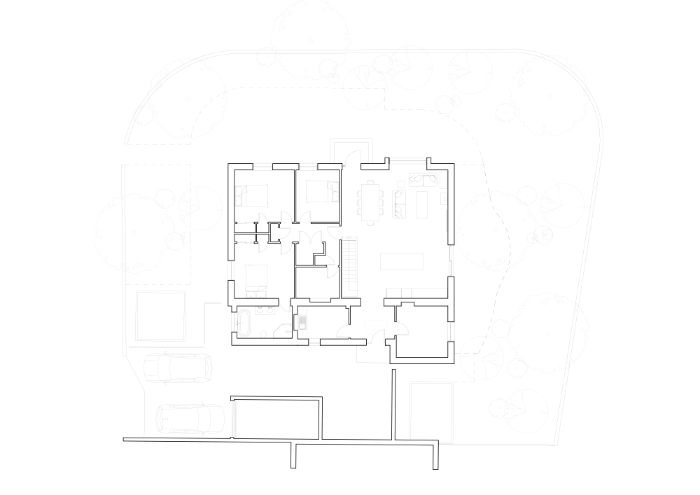 A feasibility study looked at several options for sideways or upward extensions for this corner-site property in St. Andrews. The 1970s bungalow was limiting our clients’ growing family and a larger space for contemporary living was required.